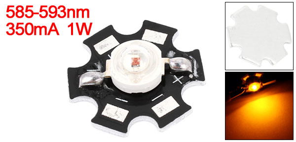 Product Name 1W LED Emitter DC Forward Voltage 2.2-2.4V DC Forward Current 350mA Luminous Flux 40-45LM Wave Length 585-593nm Power Consumption 1W Material Electronic Parts Emitter Diameter 5mm/ 0.2'' Heat Sink Base Dia 20mm/ 0.79'' Light Color Yellow Net Weight 2g Package Content 1 x 1W LED Emitter - Reviews
