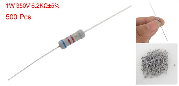 Product Name Carbon Film Resistors Rating Power 1W Resistance 6.2K Ohm Resistance Tolerance ± 5% Withstand Voltage 350V Size(Not Include Leads) 0.35 x 1.05cm / 0.138" x 0.413"(D*L) Leads Dia(Approx) 0.03cm / 0.012" Overall Length(Approx) 5.7cm / 2.2" Color As Picture Show Weight 172g Package Content 500(±2%) Pcs of Carbon Film Resistors - Reviews