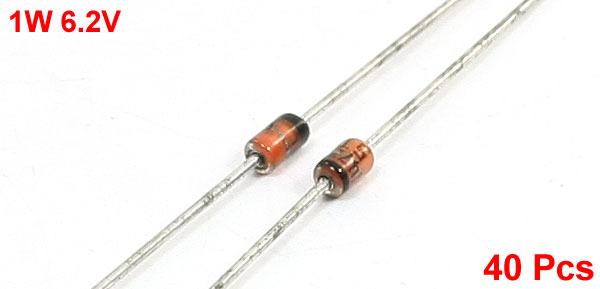 Product Name Zener Diodes Rating Power 1W Zener Voltage 6.2V Size(Not Include Leads) 4 x 2.4mm/ 0.16" x 0.95" (L*D) Leads Dia(Approx) 0.6mm/ 0.024" Overall Length(Approx) 60mm/ 2.4" Weight 12g Package Content 40(±2%) x Zener Diodes - Reviews