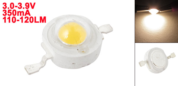 Product Name LED Lamp Bead DC Forward Voltage 3.0-3.9V DC Forward Current 350mA Intensity Luminous 110-120LM Color Temperature 2900K-3300K power consumption 1W Material Electronic Parts Body Size 8 x 5mm/0.31" x 0.2"(D*T) Total Length 15mm/0.6" Emitter Color Warm White Net Weight 1g Package Content 1 x LED Lamp Bead - Reviews