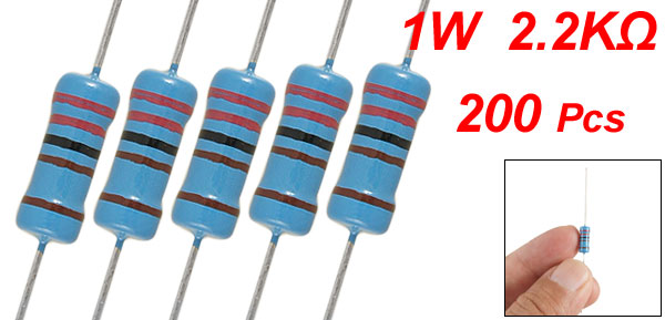 Product Name Metal Film Resistor Quantity 200±2% Pcs Rated Power 1W Tolerance ± 1% Resistance Value 2.2KΩ T.C.R(Temperature Coefficient) ±50ppm/°C Body Size 4 x 11mm/ 0.16" x 0.43" (D*L) Leads Dia (Approx.) 0.5mm/ 0.02" Total Length (Approx.) 60mm/ 2.4" Color As Picture Shown Net Weight 110g Package Content 200 Pcs x Metal Film Resistors - Reviews