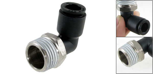 Product Name Pneumatic Quick Fitting Type Elbow Type One Touch Connector 10mm/ 2/5" Thread Connector 20mm/ 4/5" Material Plastic, Metal Size(Approx.) 3.9 x 3.6 x 1.9cm/ 1.5" x 1.4" x 0.7"(L*W*T) Main Color Black Weight 33g Package Content 1 x Pneumatic Quick Fitting - Reviews