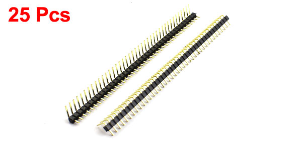 Product Name Pin Header Pins 40 Pin(1*40 Pin) Row Single Row Mounting Angle 90 Degree Pin Pitch 2.54mm Total Length 100mm/4" Material Plastic, Metal Color Black, Gold Tone Weight 66g Package Content 25 Pcs x Pin Headers - Reviews