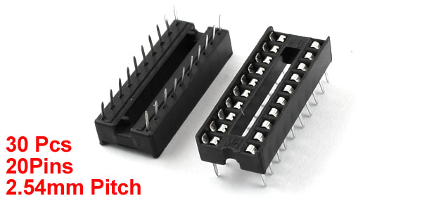 Product Name DIP IC Socket Pitch 2.54mm / 0.1" Row to Row Distance(Approx) 8mm / 0.31" Number of Pins 20 Each Size(Approx) 25 x 10 x 8mm / 0.1" x 0.4" x 0.31" (L*W*H) Material Plastic, Metal Color Black, Silver Tone Net Weight 54g Package Content 30Pcs x DIP IC Socket - Reviews