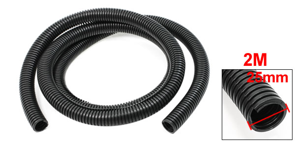 Product Name Split Loom Tubing Total Length 2M/ 6.6Ft Outer Dia. 25mm/ 63/64" Inner Dia. 20mm/ 51/ 64" Material Plastic Color Black Weight 150g Package Content 1 x Split Loom Tubing - Reviews