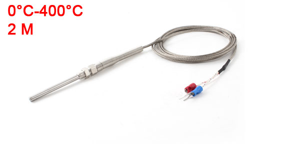 Product Name Thermocouple Probe Type K Type Fork Pin Number 2 Temperature Range 0°C-400°C Sensor Size 5 x 53mm/ 0.2" x 2.1" (D*L) Fork Pin Size 11 x 6mm/ 0.43" x 0.24"(L*W) Pin Spacing 4mm/ 0.2" External Shield Material Metal Shield Total Length(Approx.) 2 Meters / 6.6 Ft Cable Color Silver Tone Pin Color Blue, Red Weight 53g Package Content 1 x Earth Thermocouple Probe - Reviews
