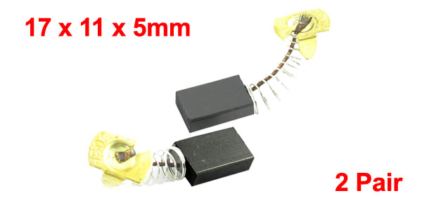 Product Name Motor Carbon Brush Fitness Generic Electric Motor Carbon Brush Size 17 x 11 x 5mm/ 43/64" x 27/64" x 1/7"(L*W*H) Total Length(Approx) 4.3cm/ 1.7" (When Spring Stretching) Weight 17g Package Content 2 x Motor Carbon Brush - Reviews