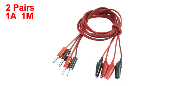 2 Pair Alligator Test Lead Clip to Male Banana Plug Cord Cable 1M