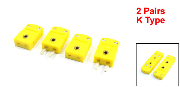 Product Name Thermocouple Plug Type K Type Plug Type Male to Female Material Plastic, Metal Main Color Yellow Body Size(Each) 27 x 17 x 8mm/ 1.1" x 0.67" x 0.3" (L*W*T) Pin Spacing 5mm/ 0.2" Weight 12g Package Content 2 Pair x Thermocouple Plug - Reviews