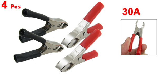 2 Pairs Black Red 30A Soft Plastic Boots Metal Car Battery Clip Clamps