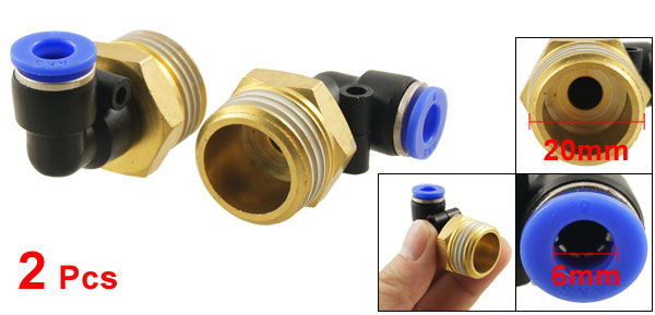 Product Name Pneumatic Fitting Inner Diameter(Blue End) 6mm / 0.236" Thread OD 20mm / 0.79" Thread Size 1/2" PT Total Size(Approx) 35 x 30 x 13mm / 1.4" x 1.2" x 0.5"(L*W*H) External Material Plastic & Metal Color Black, Blue, Brass Tone Net Weight 50g Package Content 2 x Pneumatic Fitting - Reviews