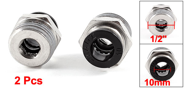Item Name Quick Fitting Model APC10-03 Material Metal, Plastic Color Silver Tone, Black Thread Size 1/2" PT Inner Diameter(Black End) 10mm Total Size(Each) 24 x 22mm/ 0.9" x 0.9" (Max.Dia*H) Net Weight 54g Package Content 2 x Quick Fitting - Reviews