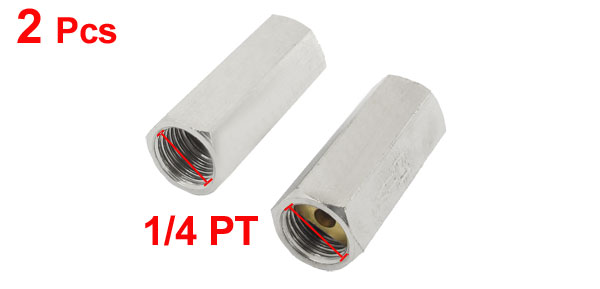 2 Pcs 1/4 PT Diameter Thread Silver Tone Straight One Way Check Valve