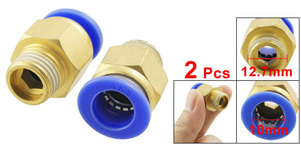 2 Pcs 1/4" Male Thread 10mm Connector Pneumatic Tube Fittings