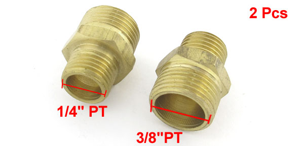 2 Pcs 1/4" PT to 3/8" PT Male Thread Reducer Pipe Fitting Straight Connector