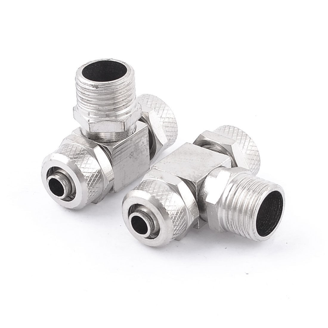2 Pcs 1/4"PT Male to 8mm Pneumatic Hose Air Fitting Tee Quick Connector Coupler