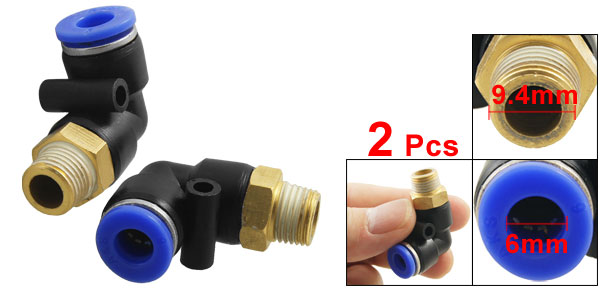2 Pcs 1/8" Male Thread to 6mm Elbow Pneumatic Connector Fittings