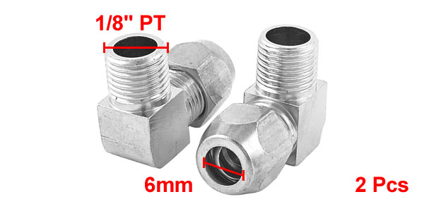 Product Name Quick Coupler Fluid Air,Vacuum Applicable Tube Polyurethane and Nylon Operating Temperature 0-60°C Type Elbow Male Thread Size 1/8" PT Male Thread Diameter 9.7mm Fit Tube 6mm/ 15/64" (Inner Dia) Overall Size 25 x 20 x 10mm/ 1" x 0.79" x 0.4" (L*W*T) Color Silver Tone Material Nickel Plated Brass Weight 31g Package Content 2 x Quick Couplers  - Reviews