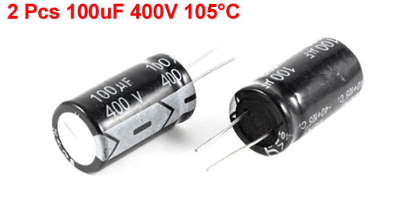 2 Pcs 100uF 400V 105C Radial Electrolytic Capacitors Black 32x18mm