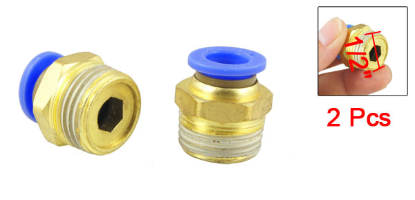 2 Pcs 10mm Blue End Pneumatic Tubing Push to 1/2" PT Quick Fittings