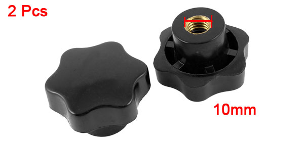 2 Pcs 10mm Female Thread Diameter Screw On Type Star Knobs Black