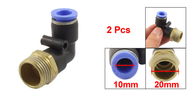 2 Pcs 10mm x 1/2" Thread Pneumatic Air Connectors Elbow Quick Fittings