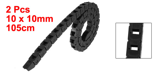 2 Pcs 10mm x 10mm Black Flexible Semi Enclosed Cable Drag Chain 105cm