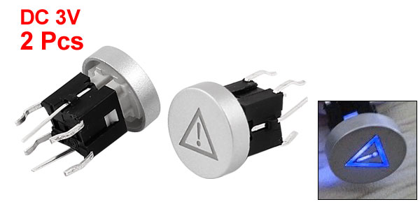 Product Name Tact Push Button Switch Light Voltage DC 3V Top Sign "Warning Sign" Contact Type Momentary Pin Count 4 Total Size(Pin Not Include) 10 x 9mm/0.4" x 0.35" (D*H) Material Plastic, Metal Case Color Black, Red,White Light Color Blue Net Weight 1g Package Content 2 Pcs x Tact Push Button Switches - Reviews