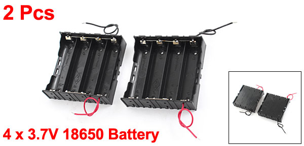 Main Color Black Fit for 4 x 3.7V 18650 Battery(Not Included The Battery) Net Weight 52g Country of Manufacture CHINA Package Content 2Pcs x Battery Holder Material Plastic, Metal Total Size 79 x 77 x 21.5mm/3.1" x 3" x 0.85"(L*W*H) Wire Length 11cm/4.3" Battery Connect Type In Parallel - Reviews