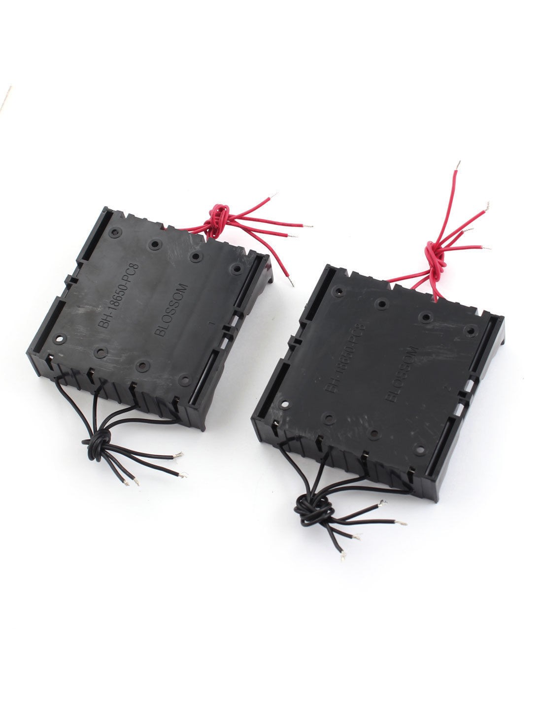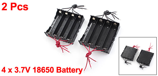 Details2 Pcs 11cm 8-Wires Black Plastic 4 x 3.7V 18650 Battery Holder Case  Main Color Black Fit for 4 x 3.7V 18650 Battery(Not Included The Battery) Net Weight 63g Country of Manufacture CHINA Package Content 2Pcs x Battery Holder Material Plastic, Metal Total Size 79 x 77 x 21.5mm/3.1" x 3" x 0.85"(L*W*H) Wire Length 11cm/4.3"