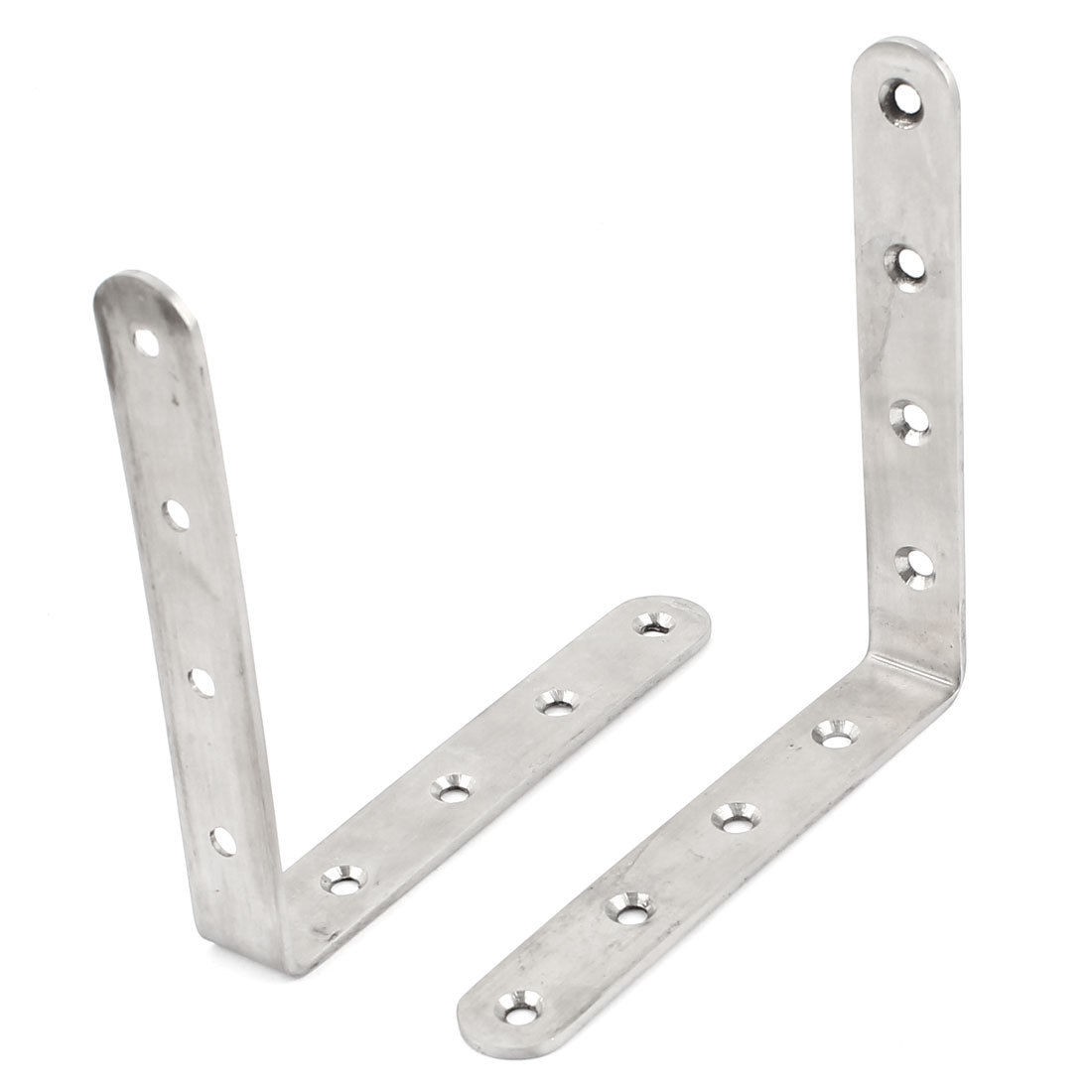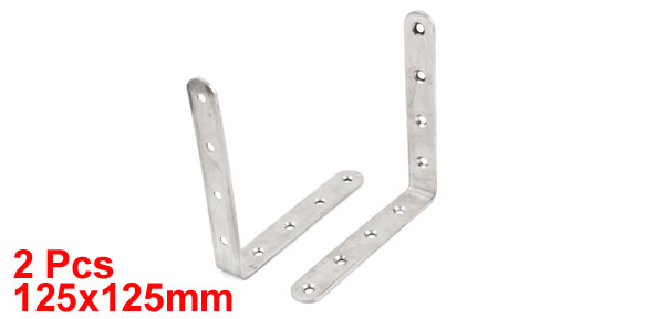 Product Name Angle Bracket Material Stainless Steel Color Silver Tone Hole Quantity 8 Holes Bracket Size 125 x 125 x 20mm/4.9" x 4.9" x 0.8"(L*W*T) Hole Dia. 5mm / 0.2" Net Weight 170g Package Content 2 x Angle Brackets - Reviews