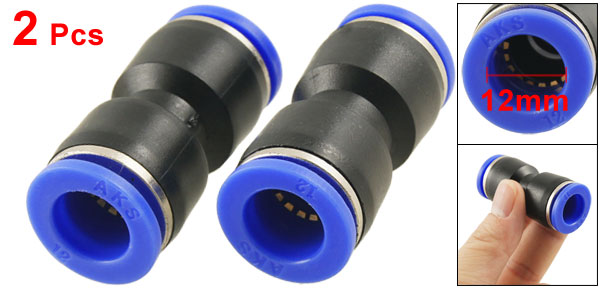 Product Name Pneumatic Quick Fitting Connector Type 12mm to 12mm Material Plastic Size (Approx) 4.7 x 2cm / 1.85" x 0.8" (L*Max.D) Color Black, Blue Weight 23g Package Content 2 x Pneumatic Quick Fitting - Reviews