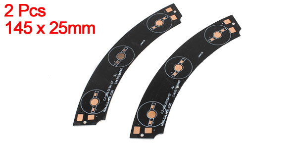 Product Name LED Aluminum PCB Circuit Board Fit for 3 x 1W/3W/5W LEDs(Series) Type Cresent Shape Size 145 x 25mm/ 5.7" x 1"(L*W) Thickness 1.2mm/0.05" Weight 25g Materials Aluminum Main Color Black, Silver Tone Package Content 2 x LED Aluminum PCB Circuit Board - Reviews