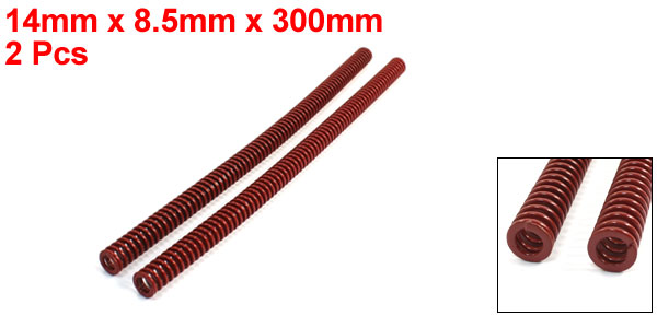 2 Pcs 14mm x 8.5mm x 300mm US Standard Red Chromium Alloy Compression Spring