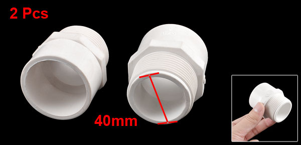 2 Pcs 1.575" Male Thread PVC Pipe Tube Adapter Connectors White