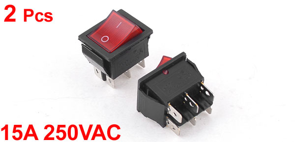 Product Name Rocker Switch Poles DPDT Terminals 6 Pin (ON-OFF) Light Color Red Rating Voltage 15A 250VAC Total Size 3.5 x 2.5 x 3.2cm / 1.4" x 1" x 1.3"(L* W *T) Mounting Dimension 3 x 2.2 x 2.8cm/1.2'' x 0.9'' x 1.1'' (L*W*Depth) Color Black, Silver Tone Material Plastic & Metal Weigth 26g Package Content 2 x Rocker Switchs - Reviews