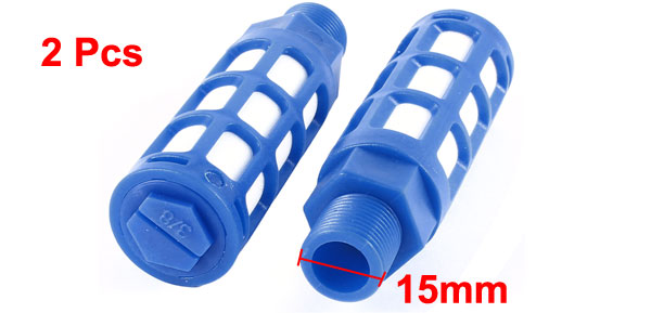 2 Pcs 15mm 3/8PT Male Thread Air Pneumatic Silencer Muffler Noise Deadener Blue