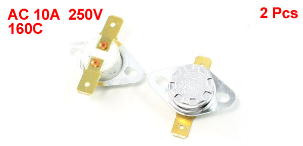 Product Name Ceramic Thermostat Model.No KSD301 Action Type NC Action Temperature 160C Voltage 10A AC 250V Size(Each) 3.3 x 3.3 x 1.3cm/1.3" x 1.3" x 0.51"(L*T) Material Metal, Ceramic Color White, Gold Tone, Silver Tone Net Weight 15g Package Content 2 x Ceramic Thermostat - Reviews