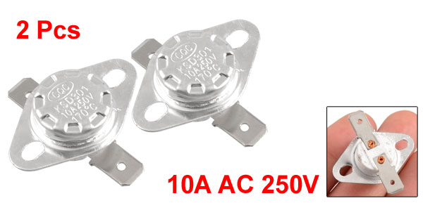Product Name Ceramic Thermostat Model.No KSD301 Action Type (NC)Normal Closed Action Temperature 170C/338F Voltage 10A AC 250V Size(Each) 3.8 x 1.2cm/1.50" x 0.47"(L*T) Material Metal, Ceramic Color White, Silver Tone Net Weight 13g Package Content 2 x Ceramic Thermostat - Reviews