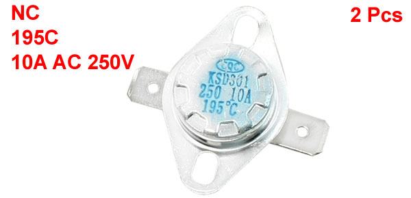 Product Name Ceramic Thermostat Model.No KSD301 Action Type NC Action Temperature 195C Voltage 10A AC 250V Size(Each) 3.3 x 3.3 x 1.3cm/1.3" x 1.3" x 0.51"(L*T) Material Metal, Ceramic Color White, Silver Tone Net Weight 15g Package Content 2 x Ceramic Thermostat - Reviews