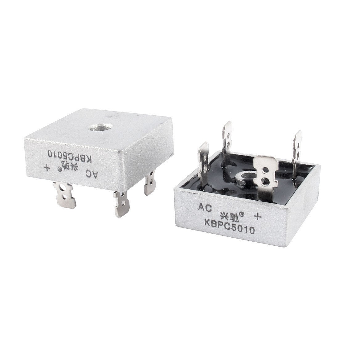 2 Pcs 1KV 50A Single Phase Diode Bridge Rectifier Gray KBPC5010 for PCB