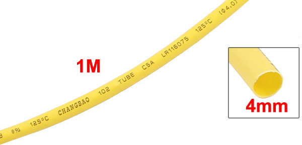 2 Pcs 1m Length Shrink Ratio 2/1 4mm Heat Shrinkable Tube Pipe Yellow