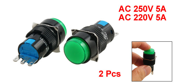 2 Pcs 1NO 1NC SPDT Green Round Latching 16mm Push Button Switch AC 250V 5A