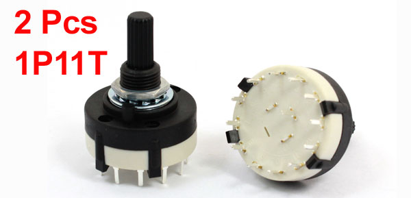 Product Name Rotary Switch Contact Type 1 Pole 11 Position(1P11T) Thread Dia 9mm / 0.35" Rotating Shaft Dia 6mm / 0.24" Shaft Length 20mm/ 0.8" Features Knurled Shaft Terminal Number 13 Pin Dimensions 26 x 38mm / 1" x 1.5"(Max.D*H) Color Black Material Metal, Plastic Weight 24g Package Content 2Pcs x Rotary Switch - Reviews