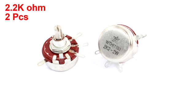2 Pcs 2.2K ohm 2W Round Shaft 4 Terminal Rotary Carbon Potentiometer WTH118
