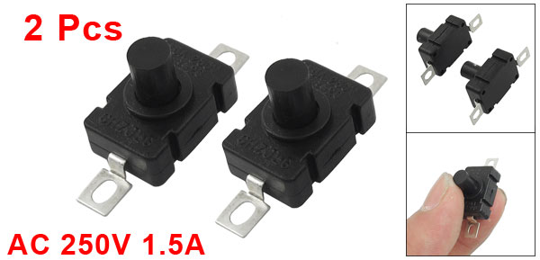 2 Pcs 2 Pin Rectangle Torch Momentary Push Button Switch AC 250V 1.5A