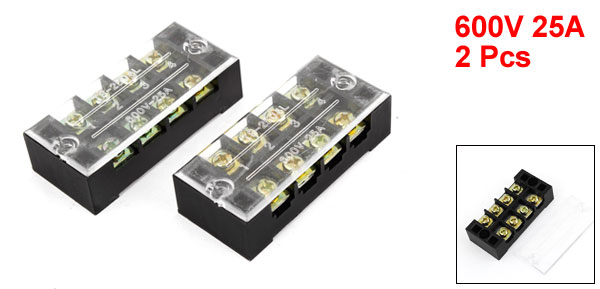 2 Pcs 2 Rows 4 Position Cable Connector Barrier Block 600V 25A
