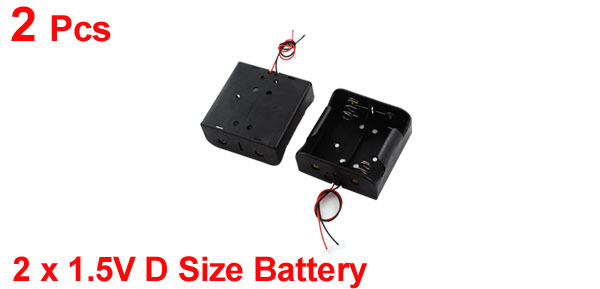 2 Pcs 2-Wired In Series 2 x 1.5V D Size Battery Holder Storage Case Black