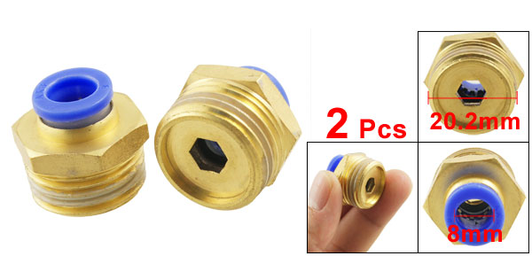 2 Pcs 20.2mm x 8mm Full Port Male Thread Pneumatic Quick Fittings