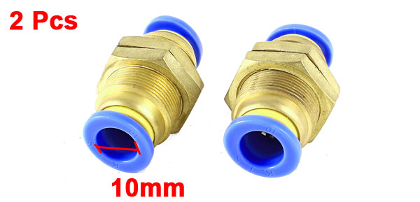 Product Name Pneumatic Fitting Design Full Port Total Size 42 x 24mm/1.7" x 0.9" (L*Max.D) Fit Tube Outer Diameter 10mm/0.39" Male Thread Diameter 20mm/0.8" Material Plastic, Metal Color Gold Tone, Blue Weight 85g Package Content 2 x Pneumatic Fitting - Reviews